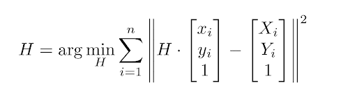 The homography matrix H is calculated using the DLT method. Assuming that it has been provided with the corresponding points in the image and court, and (xi,yi) and (Xi,Yi)as the following relation describes: